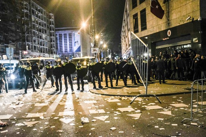 De rellen braken uit toen bekend werd dat de turkse minister voor familiezaken een toespraak zou houden bij het consulaat.